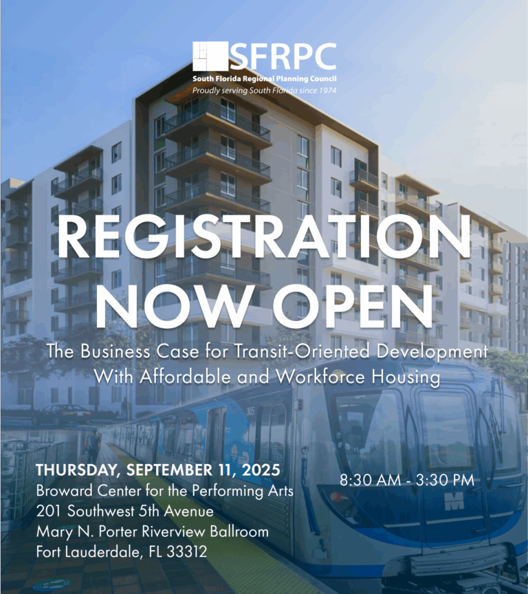 Join the South Florida Regional Planning Council and partners for a regional conference focused on building resilient, economically vibrant, and equitable communities through transit-oriented development (TOD) with affordable housing.