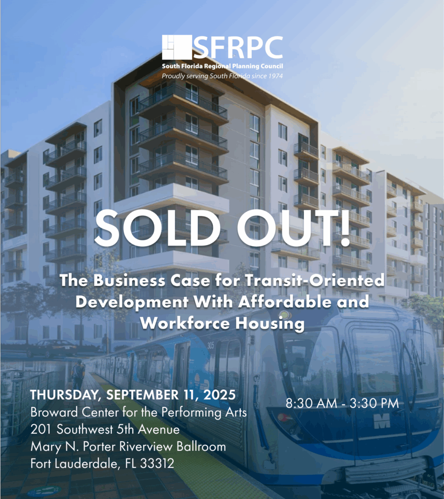 Join the South Florida Regional Planning Council and partners for a regional conference focused on building resilient, economically vibrant, and equitable communities through transit-oriented development (TOD) with affordable housing. This event brings together local leaders, planning professionals, developers, transportation experts, and business executives to explore how strategic TOD initiatives can enhance mobility, drive job creation, and improve housing access across South Florida.