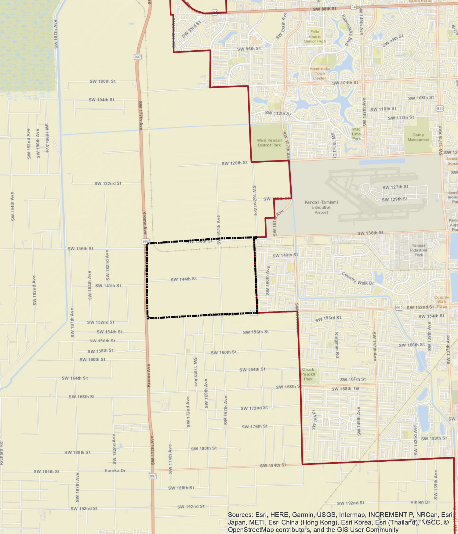 Project Overview: City Park is a proposed master-planned development encompassing approximately 954 acres of agricultural land within the jurisdictional boundaries of Miami-Dade County. City Park is bounded on the north by SW 136 Street, on the east by SW 162 Avenue, on the south by Coral Reef Drive/SW 152 Street, and on the west by Krome Avenue/SW 177 Avenue. City Park is proposed immediately adjacent to and west / outside of the adopted CDMP 2030 Urban Development Boundary which serves as the County’s urban service area boundary.